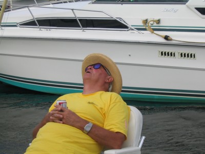 • Begin the return trip just after noon with the same antics on the way back (and a few more stops; only three people have been lost overboard due to mismanagement of boat wakes on the return trip; only one injury requiring stitches occurred)